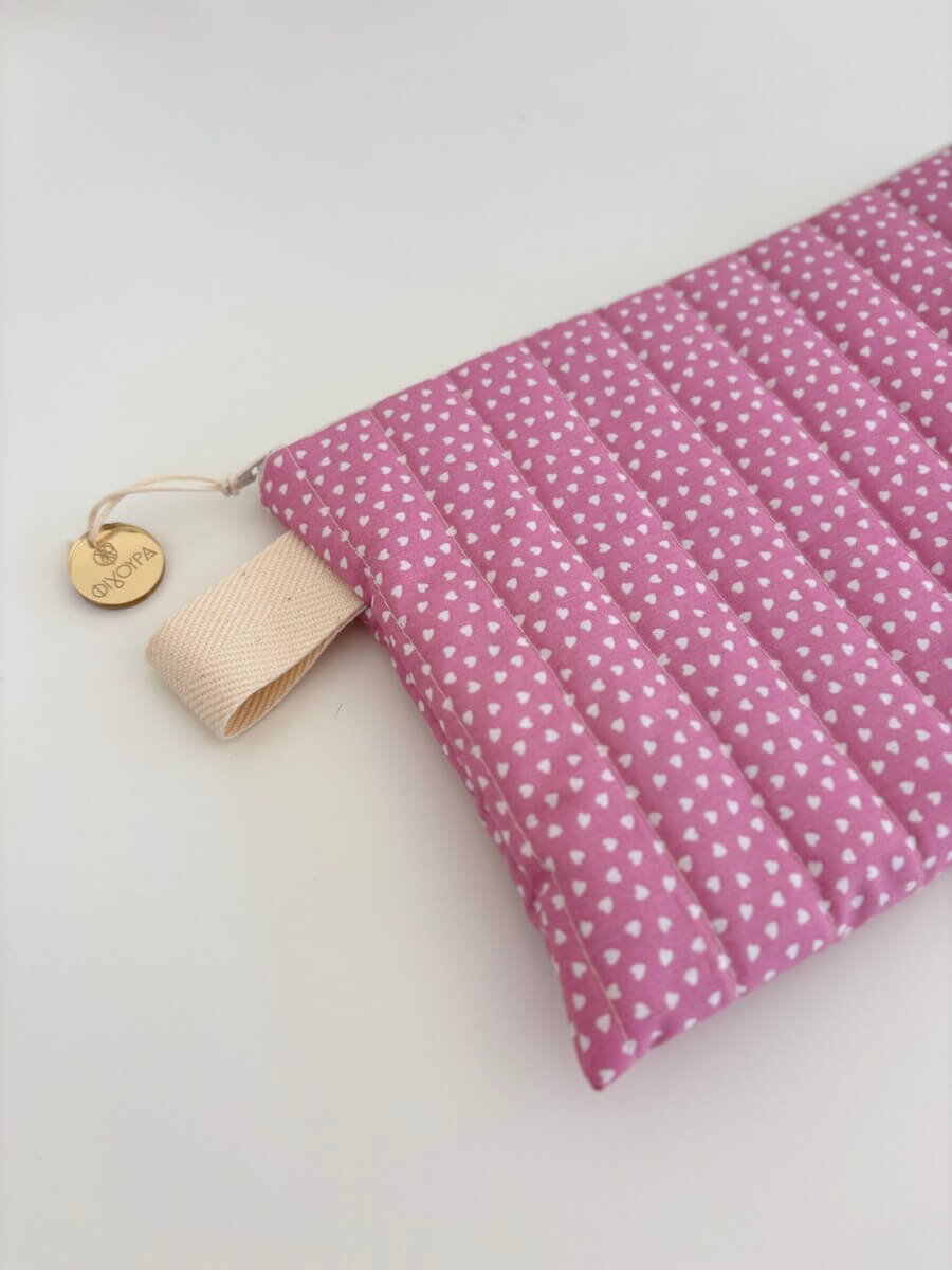 Νεσεσέρ απο βαμβακερά υφάσματα. Το εξωτερικό ύφασμα είναι βαμβακερό με σχέδιο μικρές καρδούλες.