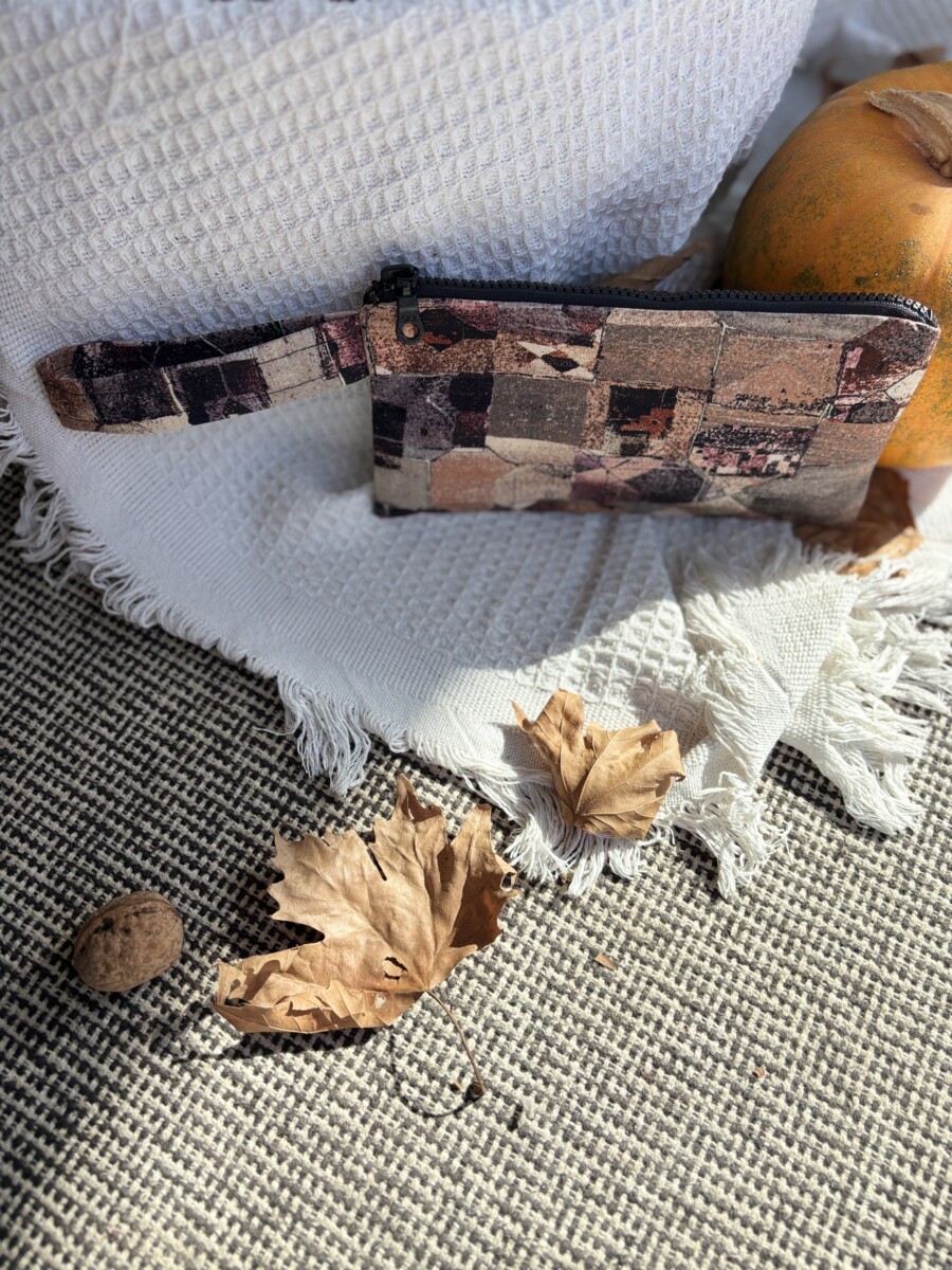 Τσαντάκι χειρός χειροποίητο. Από καμβά ύφασμα εξωτερικά και λουράκι για να το κρατάς ή να το περνάς στον καρπό.